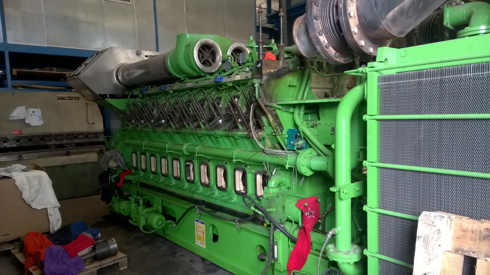 Revisie gasmotor Jenbacher 620, 3 MWE, totale cilinderinhoud 124,75 liter, bore x stroke 190x220 mm.